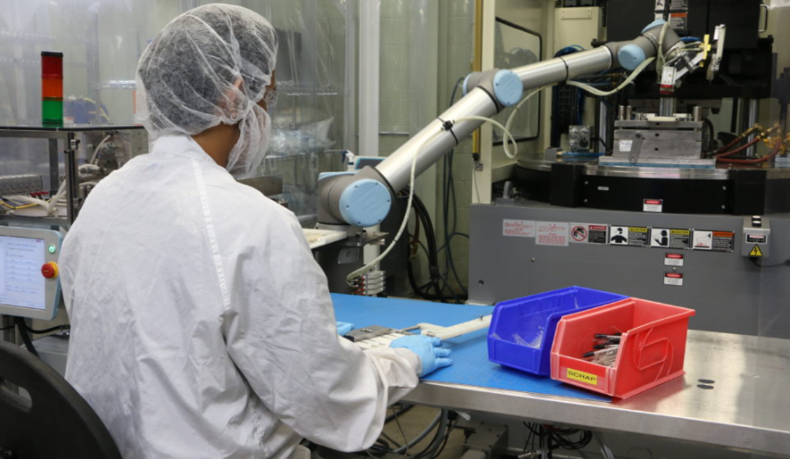 塑料廠房的車間空間往往有限,而UR機器人能夠與操作員一起工作,并能夠在不改變布局的情況下安裝在注塑機頂部或旁邊,這可以節(jié)省寶貴的生產(chǎn)空間。與傳統(tǒng)機器人相比,UR 機器人具有定位靈活性和額外的自由度,這可以極大地提高生產(chǎn)效率。