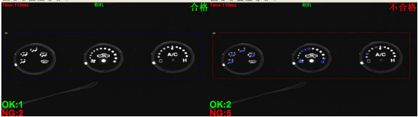 汽車儀表盤是反映車輛各系統工作狀況的裝置,由于上面集成了各種指示燈和儀表,需要在生產過程中進行大量復雜的檢測工作,而且生產工位對節拍要求較高,要求檢測速度一定要快。另外,檢測項復雜,包含了字符識別、顏色識別、圖案匹配等。以前使用人工檢測,檢測效率低,儀表盤的誤檢率和漏檢率居高不下。顯揚科技3D視覺能夠幫助汽車儀表盤制造廠商提供性能強,算法完備,檢測速度快的視覺系統。