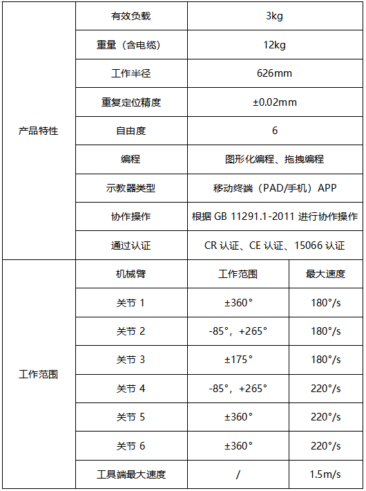 JAKA Zu 3協作機器人產品參數