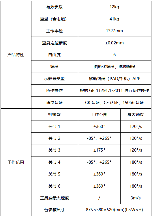 JAKA Zu 12協(xié)作機(jī)器人產(chǎn)品參數(shù)