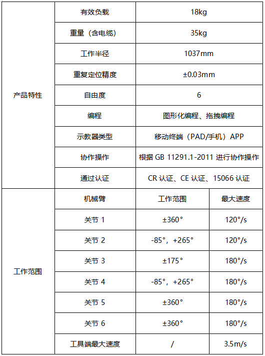JAKA Zu 18協(xié)作機(jī)器人產(chǎn)品參數(shù)