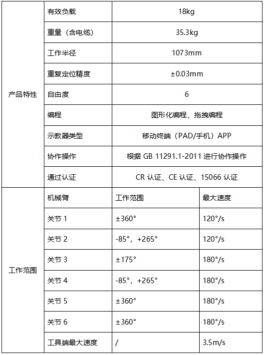 JAKA Zu 18s協作機器人產品參數