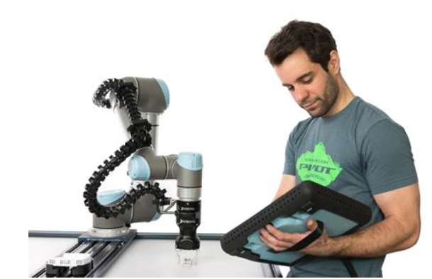 優傲機器人手臂集成UR+產品Robotiq夾爪,為用戶提供了一站式的自動化工具。Robotiq夾爪直接和優傲機器人的POLICOPE操作系統無縫集成,使用者只需要簡單配置,而無需編寫任何代碼,極大地降低了使用門檻,只需要調試幾分鐘便可以完成視覺類的抓取