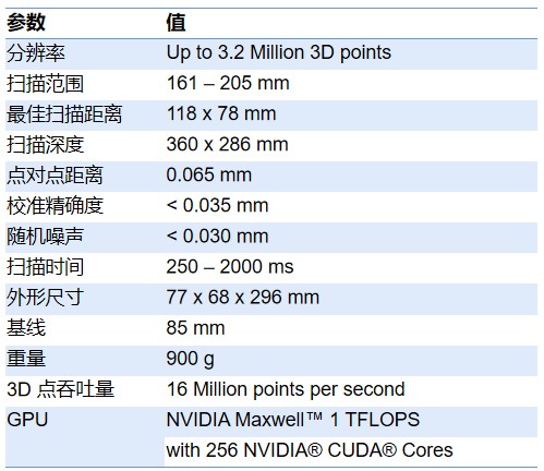 Photoneo PhoXi 3D Scanner S 參數(shù)如下: