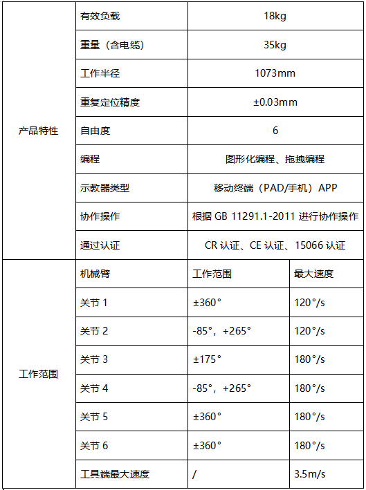 JAKA Ai 18協作機器人產品參數: