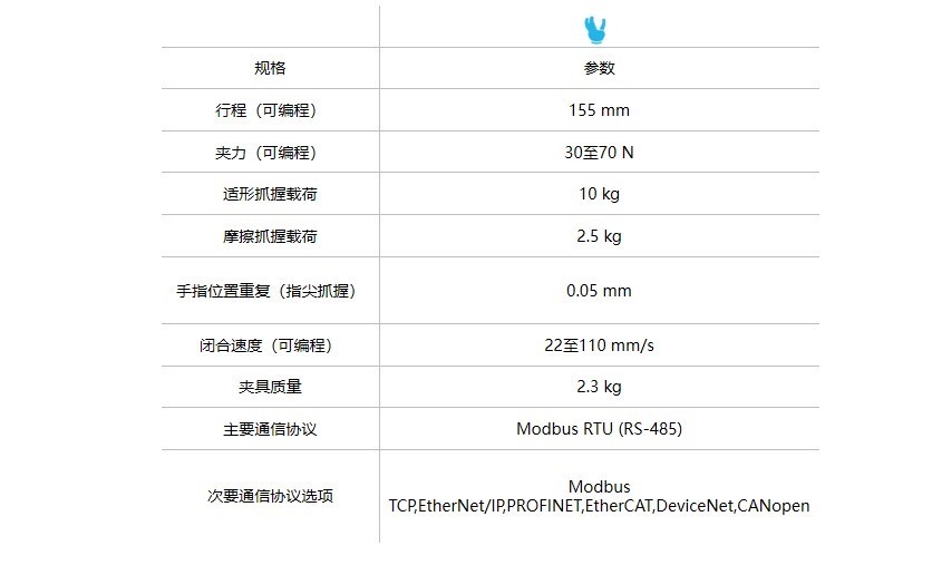 Robotiq 多功能自適應(yīng)機器人夾持器的參數(shù)