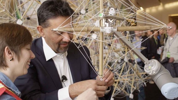 “蜂巢”是一座由生竹子和纖維條建成的建筑,由歐特克大學、斯圖加特計算機設(shè)計學院(ICD)、歐特克機器人實驗室和優(yōu)傲機器人聯(lián)合打造而成。旨在使用戶體驗到機器人制造、可穿戴設(shè)備、RFID跟蹤和建筑構(gòu)件嵌入智能設(shè)備無縫集成于建筑之中的無窮樂趣。這是一項艱巨的挑戰(zhàn)。