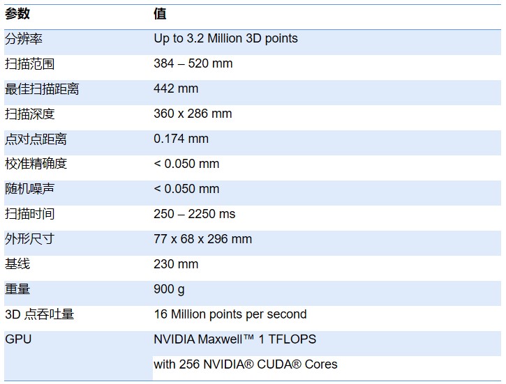 Photoneo PhoXi 3D Scanner XS參數(shù)如下: