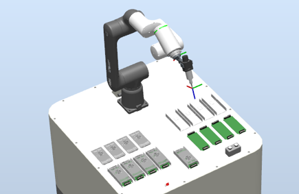 - CRB 15000鈑金組裝及螺絲鎖付工作站演示了鈑金組裝的工藝流程:GoFa™ CRB 15000協作機器人將鈑金從各個料盤中取出,放置到組裝位進行裝配,然后進行螺絲鎖付。