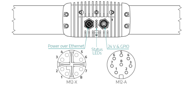 ■連接PoE噴油器輸出端口的M12-X以太網(wǎng)電纜