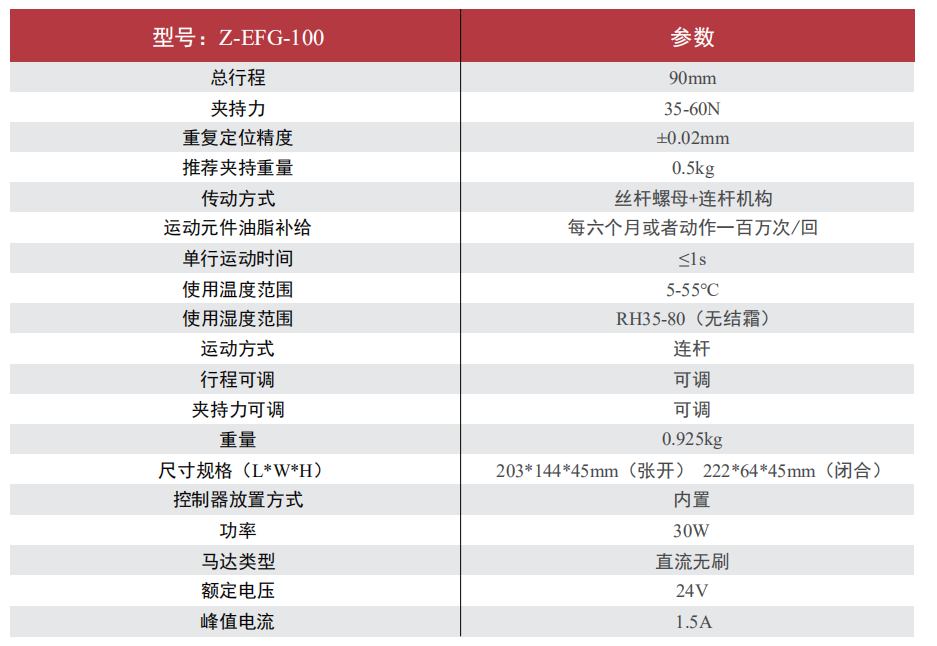 慧靈Z-EFG-100電動(dòng)夾爪的特點(diǎn):