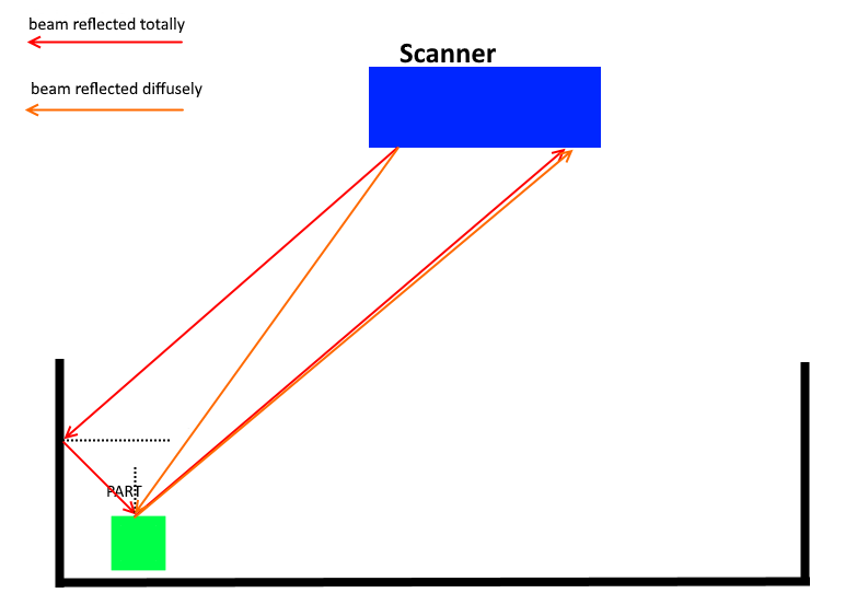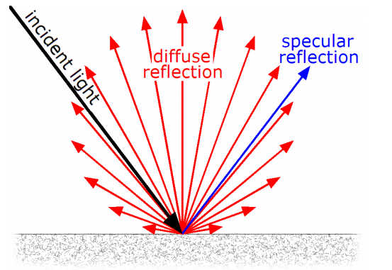 PhoXi 3D掃描儀使用投影3D圖案的漫反射來重建物體表面。以下方案描述了漫反射和鏡面反射光束之間的差異。