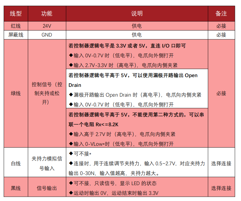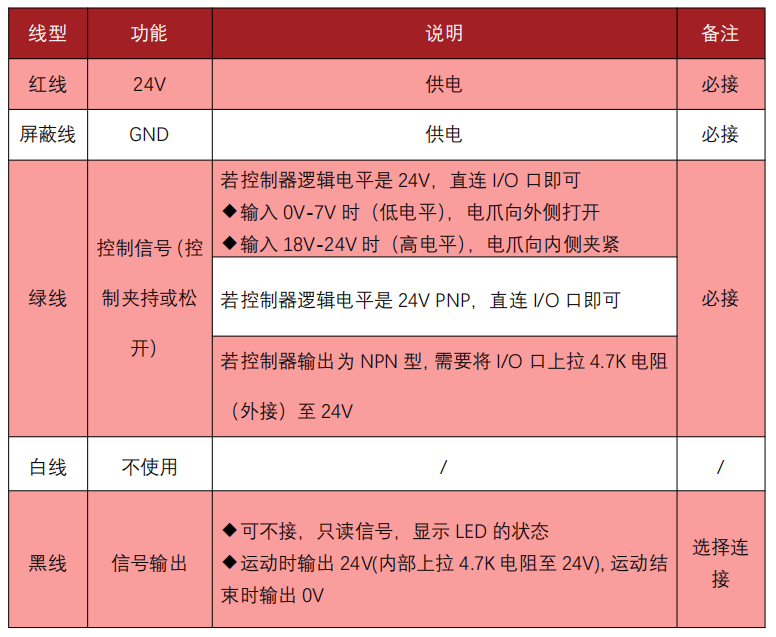 慧靈Z-EFG-F電爪線序說(shuō)明 (PNP)