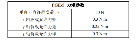 PGE-5 夾爪的具體參數在下表中詳細列出: