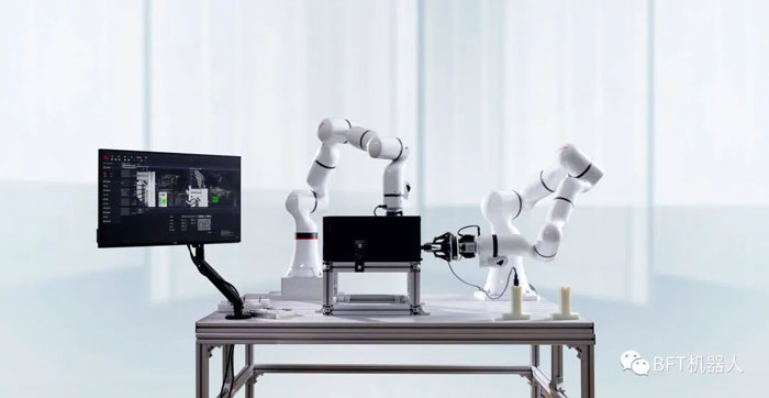單臂協(xié)作機(jī)器人只有一條手臂,是機(jī)械臂中最常見的形式。由于布置靈活、控制簡單,廣泛應(yīng)用于各種行業(yè)場景。雙臂協(xié)作機(jī)器人擁有更廣闊的動作空間,高效靈活,適用于需要交互協(xié)作的負(fù)載應(yīng)用,或者在有限空間完成多動作的場景,如雙手?jǐn)Q瓶蓋的協(xié)同動作,與單臂機(jī)器人相比,雙臂協(xié)作機(jī)器人具有更高的靈活性和可操作性,可以完成單臂不能完成的任務(wù)。