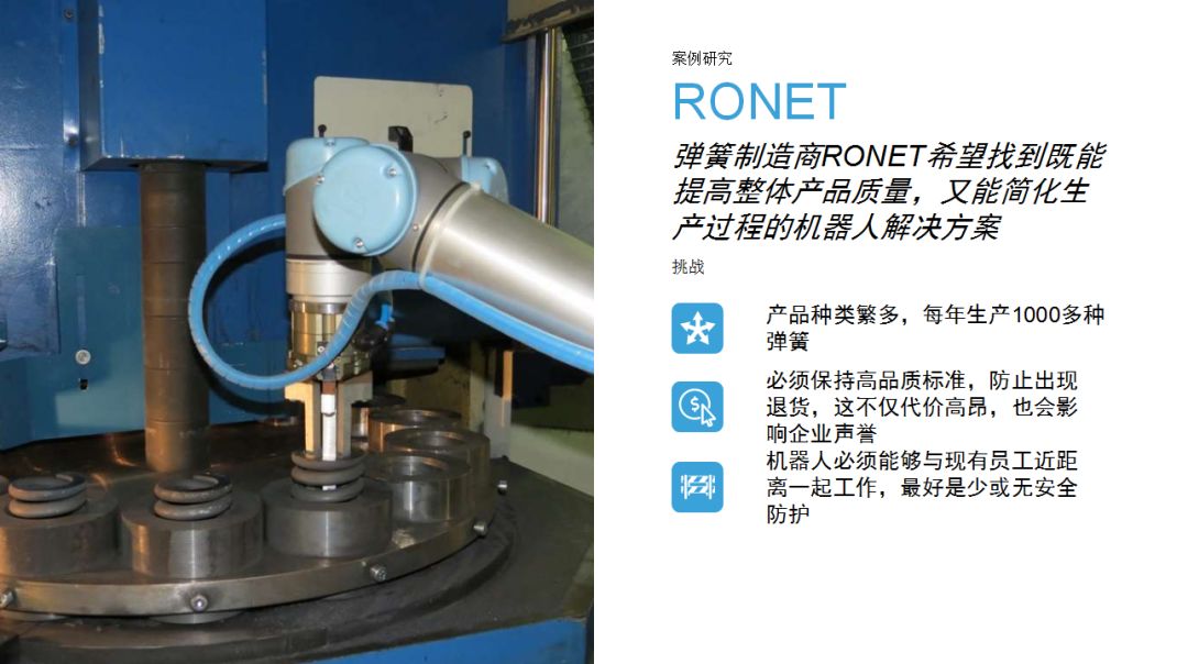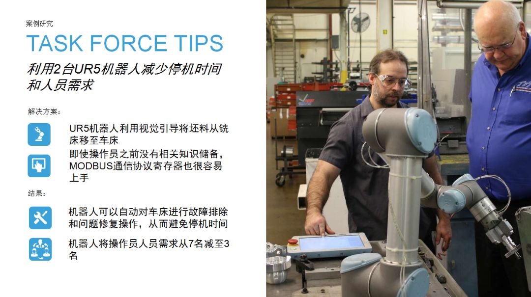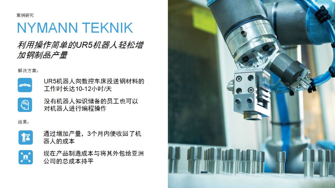 3、優(yōu)傲機械臂的導入能夠替代原來照管機器人的工人,從這些崗位上轉移出來的人力可以從事有更高附加值的工作。同時,也降低了人手操作機床的危險系數。