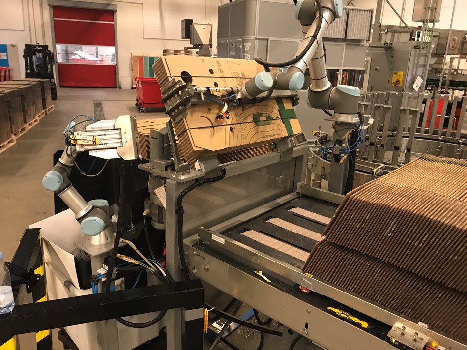 某全球最大的啤酒釀酒商引進了2臺UR機器人,UR10機器人專門用于運載重物,還負責將10個紙箱捆在一起。在沒有UR10機器人之后,工人總是容易受到割傷,但是有了機器人之后就不存在這種問題了。UR3機器人則負責處理電纜,兩臺機器人交互協作進行,現在產能提高了不少,且生產線再也沒有出現員工受傷的情況。