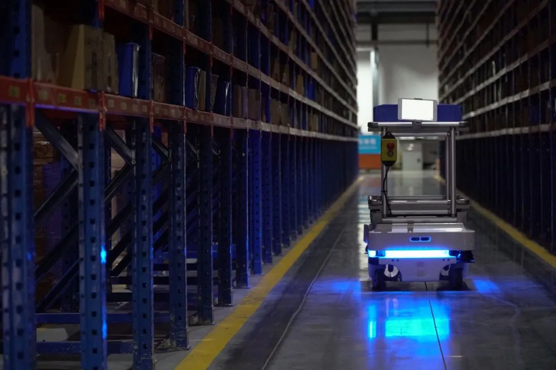 機器人與倉庫內的叉車協作,機器人可以在一定高度從定制托盤架上拾取并運送托盤,而叉車主要從更高的托盤架上拾取托盤,因此工作是分開的,叉車駕駛員可以專注于更復雜的任務。