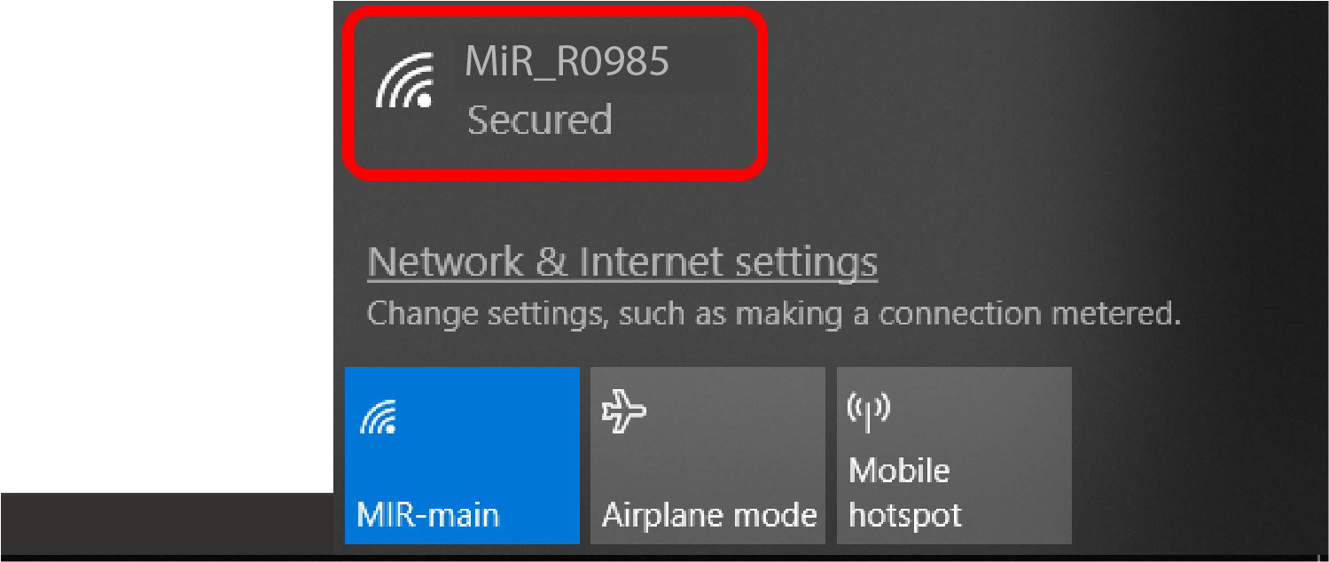 1. 使用個人電腦、平板電腦或手機連接機器人的WiFi 接入點。接入點名稱格式如下:MiR_RXXXX。