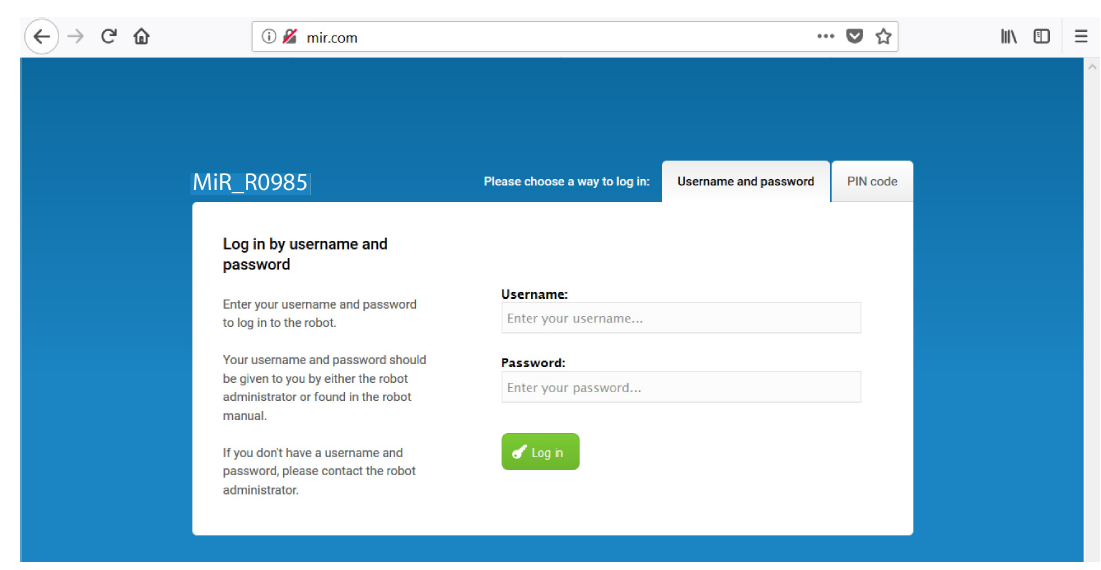 MiR機器人WiFi接入點和訪問網絡界面的用戶名和密碼位于MiR 用戶名和密碼文檔中。包裝箱內包括該文檔與機器人。