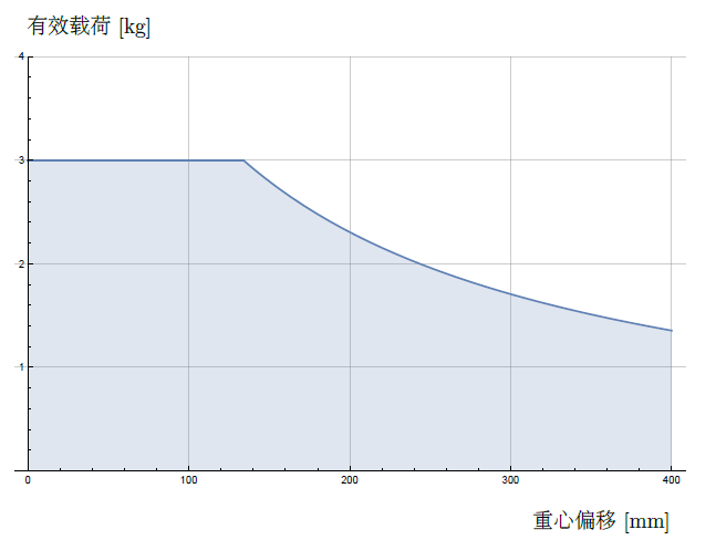 圖4.3 UR3 機器手臂最大允許有效載荷與重心偏移之間的關系。
