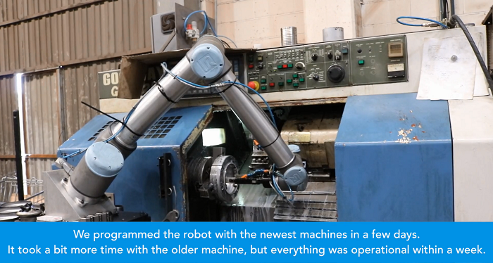 將Robotiq 2F-140自適應(yīng)抓手和優(yōu)傲機(jī)器人UR10集成到每臺機(jī)器上,使每位員工可以照顧三臺機(jī)器。現(xiàn)在,他們的機(jī)器可以全天候運(yùn)行,生產(chǎn)能力提高了一倍。