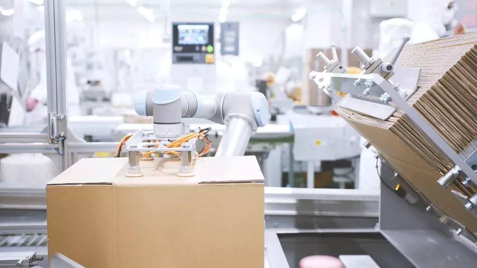 因此,過去需要兩個人的內盒包裝線現在僅需一個人和四個UR5協作式機器人,從而使NIPPON能夠在工人休息時保持生產線運行。安裝UR5也加快了生產速度,使得每小時包裝的產品數量增加了30%。外盒包裝線過去需要一個人操作,現在通過利用UR5實現了完全自動化。這些生產線的操作員現在正在進行不同的、更具增值價值的任務,例如材料供應和工序檢驗。
