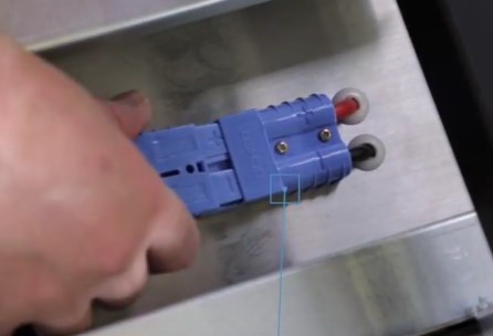 2. 將兩條電池線纜中的一條連接至電池箱頂部的插頭。第二條電纜用作連接備用電池( 若有) 。