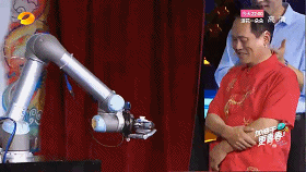 英特爾中國研究院攜優傲機器人登陸湖南衛視國內首檔原創頂尖科技秀《我是未來》。在節目上,UR機器人當場扮演“老虎”,與老藝術家配合重現“武松打虎”經典橋段。這段表演整體古樸又不失靈動,讓人嘆為觀止!