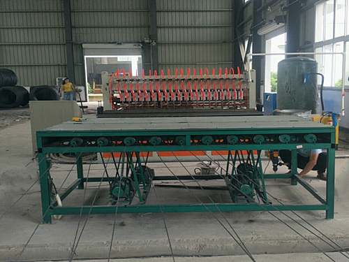 數控鋼筋網片機也叫做龍門排焊機,鋼筋焊接網設備,鋼筋網焊網機,鋼筋網片生產機械等等。鋼筋網排焊機主要焊接絲徑為3-6mm或者5-12mm或者3-8mm。考慮運輸條件,焊接網長度不超過12米,寬度一般不超多3.2米等。鋼筋網排焊機技術參數型號;絲徑6-12mm;經絲間距;100mm-300mm;緯絲間距50mm-300mm;網寬Max.2.5m;網長Max.12m;焊頭24pcs;焊接速度60times/min;變壓器100kva*12pcs;送絲方式 預先調直切斷;重量6.5T;尺寸14m*3.1m*2.3m鋼筋網排焊機附屬設備液壓調直切斷機,三臺。