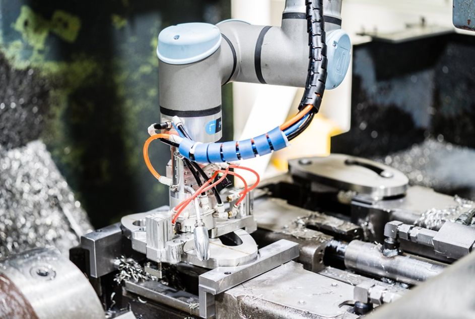 于是,Ket-Met便購(gòu)入了UR10協(xié)作機(jī)器人,用來(lái)提高自動(dòng)車床的產(chǎn)量,安裝和編程花了兩周時(shí)間。優(yōu)傲將工作件移動(dòng)到車床或銑床上,等待其完成加工,然后將成品運(yùn)輸?shù)较礈旎@中進(jìn)行清洗。